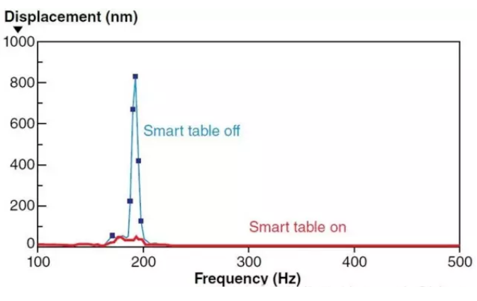 系統(tǒng)穩(wěn)定性不只受高頻振動(dòng)的影響,低頻振動(dòng)的干擾同樣需要重視,尤其在系統(tǒng)組件的頻率附近。氣浮隔振腿的主要作用除了支撐,還體現(xiàn)在能有效削減傳遞到桌面的低頻地表振動(dòng)。